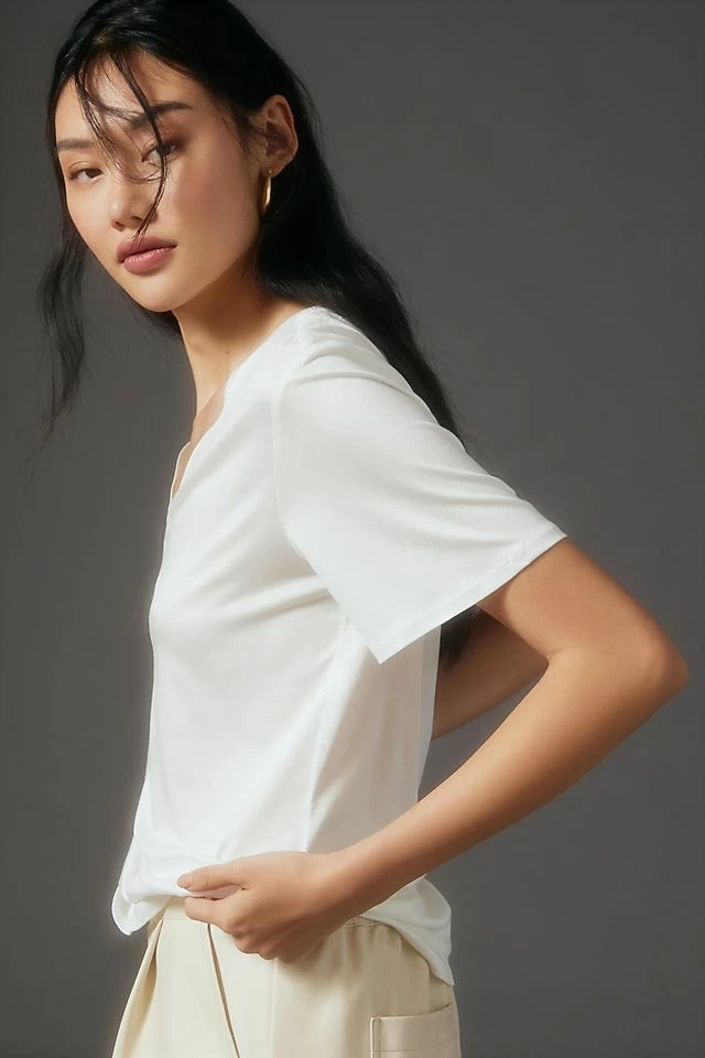 New ๐ŸŽ By Anthropologie Silky V-Neck Top WHITE ๐Ÿ‘