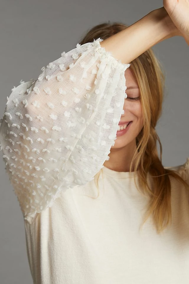 - Semi-sheer puffed sleeves