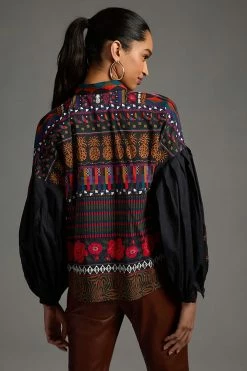 Wholesale ๐งจ Farm Rio Farm X Anthropologie Puff-Sleeve Blouse BLACK MOTIF โ๏ธ