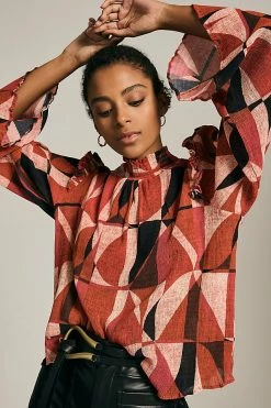 Wholesale ๐ The Odells Nicole Trumpet-Sleeve Blouse RED MOTIF ๐